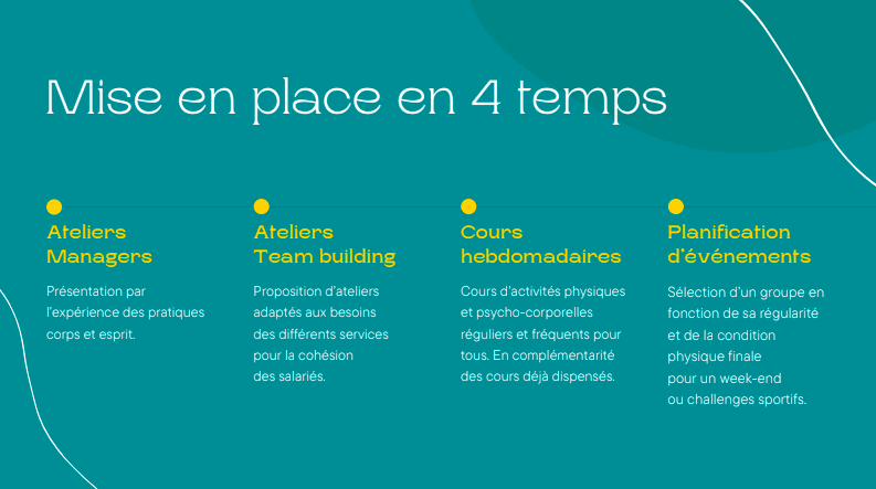 Développer la pratique d’activité physique, sportive et les activités psycho-corporelles en milieu professionnelle en proposant des offres adaptées aux problématiques de votre entreprise : le stress, le sommeil, la concentration